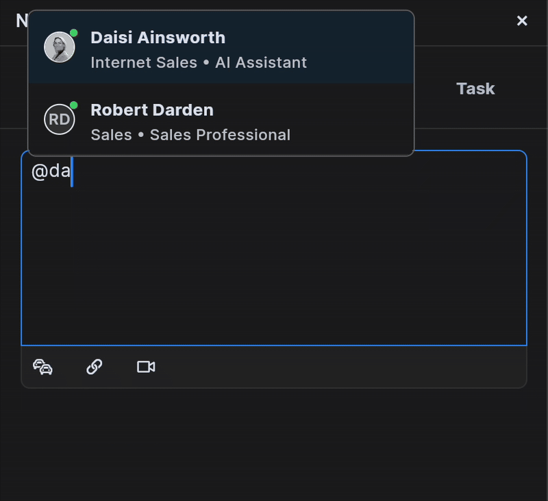 We also have a Monitoring Agent that watches conversation quality, plus our smart DAISI Assistant that can do anything you ask via an @DAISI tag. Together, they act like a 24/7 virtual BDC team: “They act as virtual sales assistants”, engaging leads on any channel and logging every detail in the CRM. Because these agents run in the background, your CRM stays fresh and your team can focus on the people who need human attention.